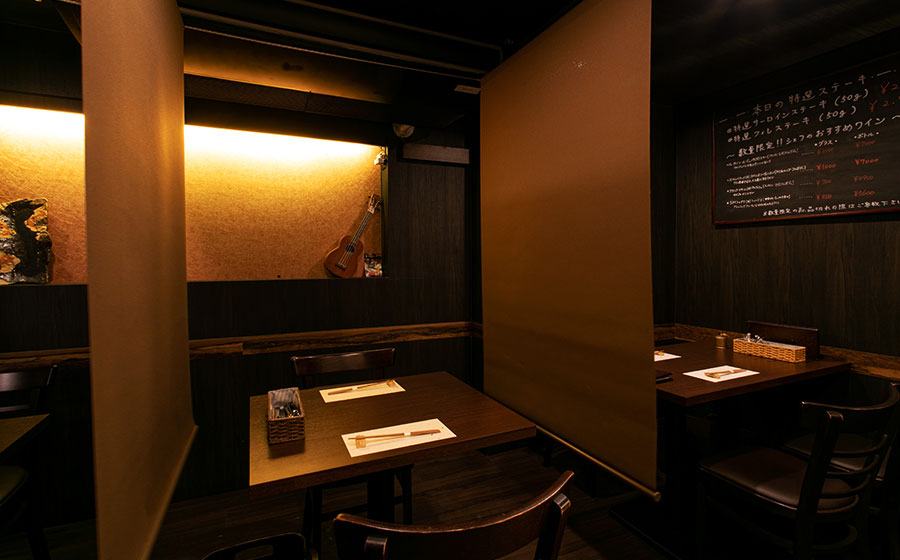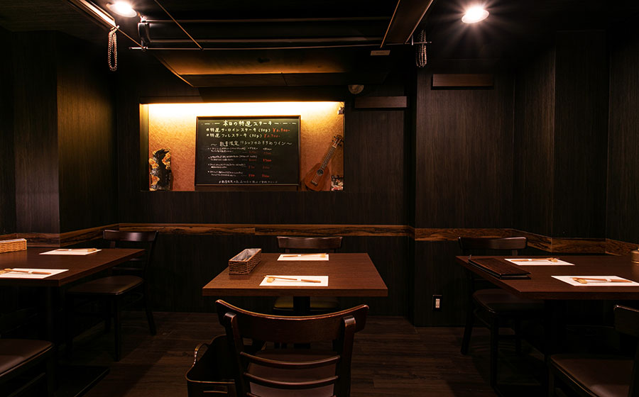 カジュアルな隠れ家のような雰囲気で、特選和牛ステーキや海鮮の鉄板焼きフルコースをお召し上がりいただけます。